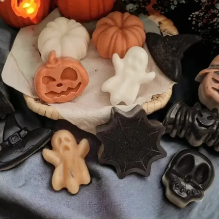 Halloween Wax Melts Gift Box Ghosts Skulls Spider Web Pumpkins Witch Hats Bats Customizable Scents and Colors – 3 shapes